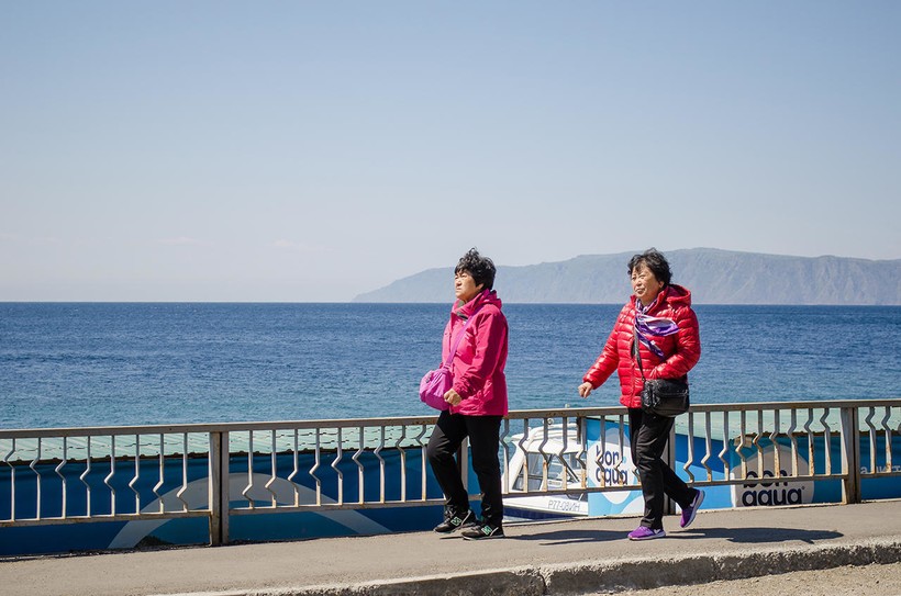 В весенние месяцы на Байкале начинает вскрываться лед, и пешие прогулки по озеру становятся невозможными. В Листвянке с озера дул сильный ветер, хотя температура воздуха держалась выше нуля: до +12 днем и до +5 ночью. Дождей не было. Я трогала байкальский лед и озерную воду после его вскрытия. Ее температура была равна +3 градусам, но казалась холоднее. Я видела купающихся людей (закаленных моржей).