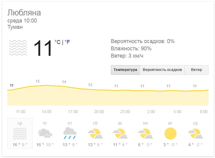 а именно такая сегодня погода в Любляне 23 ноября 2016 года. А в пятницу будет "прижиг лучек", или Включение Самой Главной Рождественской Ёлки Словении. Так, что новогодние праздники уже начались