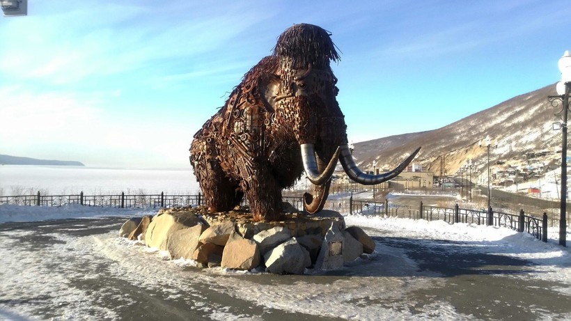 Магадан в апреле произвел приятное впечатление. Возможно потому, что он неуловимо напоминал родной Петербург. Что, в общем-то, неудивительно, послевоенной застройкой занимались ленинградские архитекторы. Из достопримечательностей запомнился монумент «Маска скорби», огромный металлический мамонт, Нагаевский маяк в одноименной бухте.