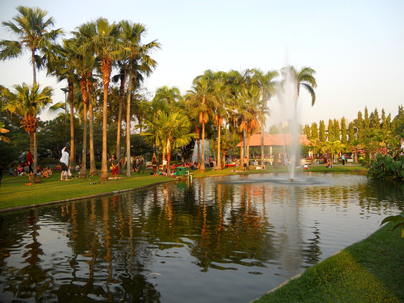Как видно, небо голубое, солнце светит, все яркое и цветущее. Одежду мы носили туже что и на юге Таиланда, хотя я рассчитывала что будет прохладнее и брала вещи потеплее.