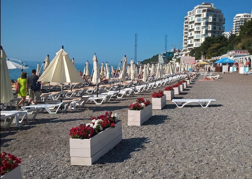 Целью моей поездки было получение бронзового загара (набрала кучу вспомогательных солнцезащитных и увлажняющих средств) и купание в Чёрном море. Вода оказалась достаточно тёплой — 23°C. Радовало отсутствие склизких медуз, штормов, цветущих водорослей, а вот сам пляж немного подкачал. Народу — не протолкнуться. С самого утра люди занимают свободные места, собираясь насладиться пляжным отдыхом. Только вечером становится немного свободнее, но солнце уже заходит, поэтому позагорать не получится. Я расстроилась, но потом узнала о наличии более свободных платных пляжей, где можно провести время: