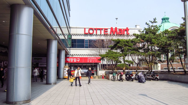 Что же касается продуктов питания, то рацион корейцев существенно отличается от привычного нам, так что в супермаркете можно не встретить привычных нам продуктов питания (гречка,сало и т.д). Ради интереса, я даже записал несколоько основных продуктов и цены них,чтобы потом сравнитьих с московскими,и я был приятно удивлен-цены на продукты практически одинаковые!.Вот приблизительные цены в сети супермаркетов Lotte Mart (один из самых популярных в Корее):