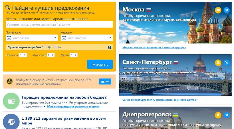 Перейдя на главную страницу сайта системы бронирования, я заполняю несколько полей:
