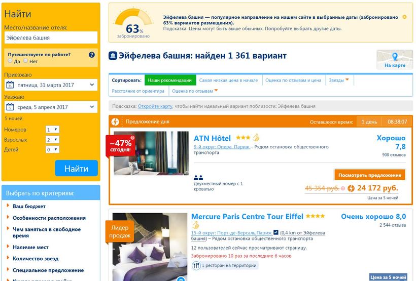 - наши рекомендации - рекомендуемые отели на основании положительных отзывов гостей;