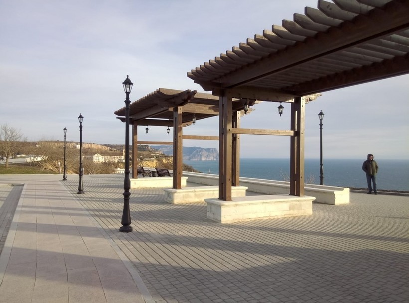 К погоде, конечно, у меня замечания имеются, но их немного. В дневное время было тепло, солнечно, но немного ветрено и иногда пасмурно. Обошлось, к счастью, без осадков. Потому все запланированные дневные экскурсии я посетить успела. Термометр в дневное время поднимался до +14 градусов. На улице стояла настоящая весенняя погода! С удовольствием я проводила время на свежем воздухе. А вот вечерняя прохлада, которая опускалась на город-герой уже после 16:00, меня немного напрягала. Температура в весенний разгар снижается тут стремительно. Ночью свежо, всего +9. После заката поднимался ветер... По пляжу прогуливалась я всего пару раз. Делать вблизи моря нечего. Вода холодная, а пляжные территории только начали подготавливать к предстоящему туристическому сезону. Темнеет в городе в 20:00.