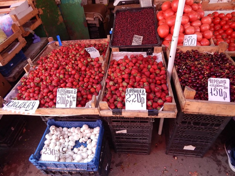 На курортных рынках можно встретить немало местной продукции, выращиваемой трудолюбивыми дачниками. Товар не только очень вкусный, полезный, но и доступный по цене. Я вдоволь наелась: