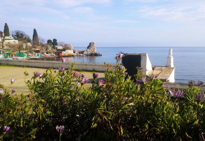Сразу скажу: погода к разгару весны стабилизируется. На смену пасмурным и серым дням, приходят солнечные и умеренно теплые. Температура в дневное время держится на отметке +14 градусов. На улице настоящая весна. Кругом все цветет и зеленеет. Мой короткий отпуск, к счастью, обошелся без осадков и облачности. А вот море радости никакой у меня не вызвало. Вода темная. Плюс из-за шторма мутная. Естественно, купающиеся отсутствуют. Погода, к сожалению, еще не располагает к водным процедурам. Холодно. Вечереет тут около 19:00. Световой день вырос до 14 часов. Непроглядная ночь опускается на поселок-курорт в 20:00. Да, ночью здесь прохладно. По ощущениям: март вернулся. Да-да, всего +6.