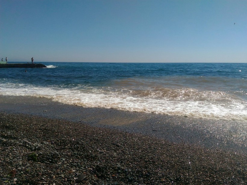 По прибытию на курорт меня встретила солнечная погода. Уже отсутствовала знойная жара, на смену ей пришло умеренное тепло днем и прохлада вечером. В воздухе кружился запах осени. Листочки на деревьях начинали потихоньку менять цвет листвы... Осеннее море, к сожалению, интереса не вызвало никакого. Вода потемнела, волны усилились. Купающихся людей, несмотря на дневные +17 градусов, я не видела. Да, моя рабочая поездка обошлась без осадков. Небо радовало безоблачностью.
