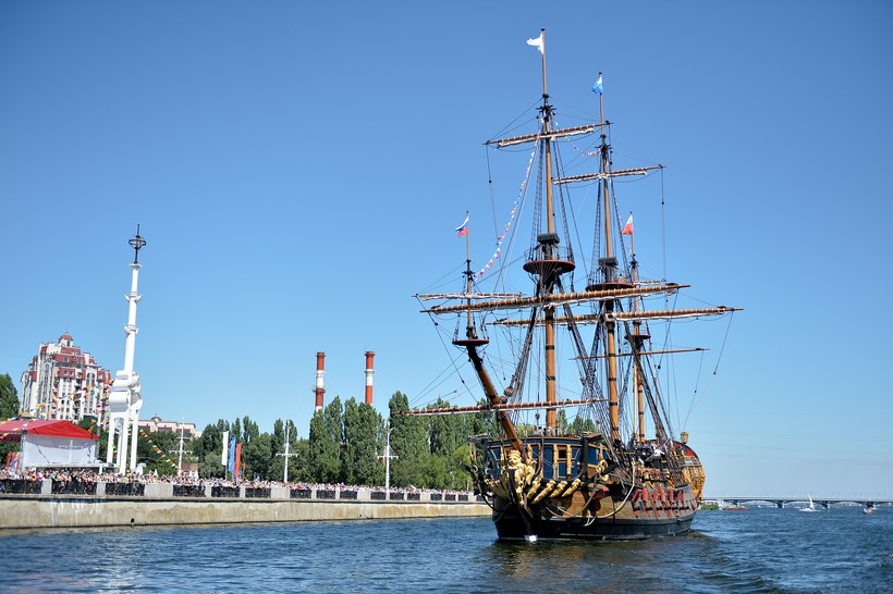 С Воронежа начинается история Российского флота. Он был выбран Петром I для постройки кораблей к Азовскому походу. А причины основания здесь судоверфи были следующие: