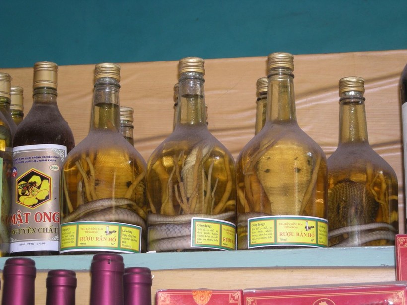 Во Вьетнам я ехала за экзотикой, поэтому и приобретала преимущественно экзотические вещи. В небольших магазинах и на рынках очень много бутылок, в которых заспиртованы змеи, скорпионы и прочая устрашающая живность. Они позиционируют это как лечебные настойки, но что-то я опасаюсь принимать внутрь их самопальный алкоголь, еще и настоянный на каких-то гадах. :) Для меня - это сувенир на видном месте в доме.