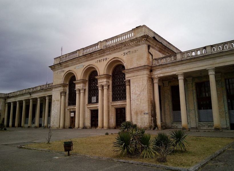 Прежде всего можно увидеть здания. Например, вот как выглядит здание вокзала города Гагры: