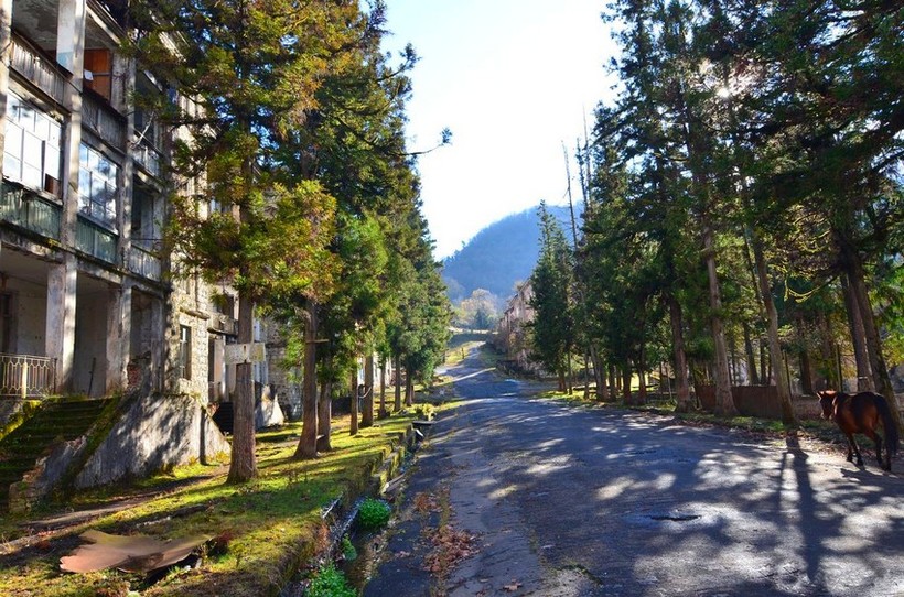 Местные говорят, что город-призрак Ткуарчал – это не единственный такой город. Я бывала в Припяти несколько раз, но так жутко мне там не было, как в этом городке, похожем на декорацию фильма-ужасов о последней катастрофе человечества. Городок построили во время войны, в 42-м, строили его пленные немцы, в том числе и инженеры – и это заметно. Расположился он между гор и к нему ведёт единственная дорога.