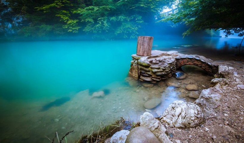 Этот невероятной красоты водопад нужно увидеть каждому туристу. От него сложно оторвать взгляд, его длина составляет 20 метров, а высота 8. Когда я приехал на это место, то узнал, что это не природный водопад, а рукотворный. Некогда монахами Новоафонского монастыря была сооружена арочная плотина, а водопад стал, так сказать, «побочным эффектом».