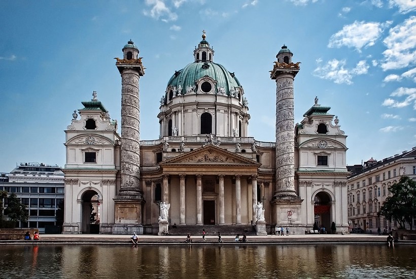Давно хотел посетить Карлскирхе, поэтому я в обязательном порядке отправился к этому величественному храму. Заплатил за вход 8 евро с возможностью подняться на лифте к самой высокой точке Карлскирхе. Снаружи архитектура здания поражает своей уникальностью, поэтому перед входом советую сделать пару снимков на память. Внутри не менее прекрасно: роскошное убранство алтаря, прекрасные фрески и многое другое. Красивый вид открывается со смотровой площадки (как раз на лифте и поднимался). Я считаю, что посмотреть в Вене на этот замечательный храм должен каждый.