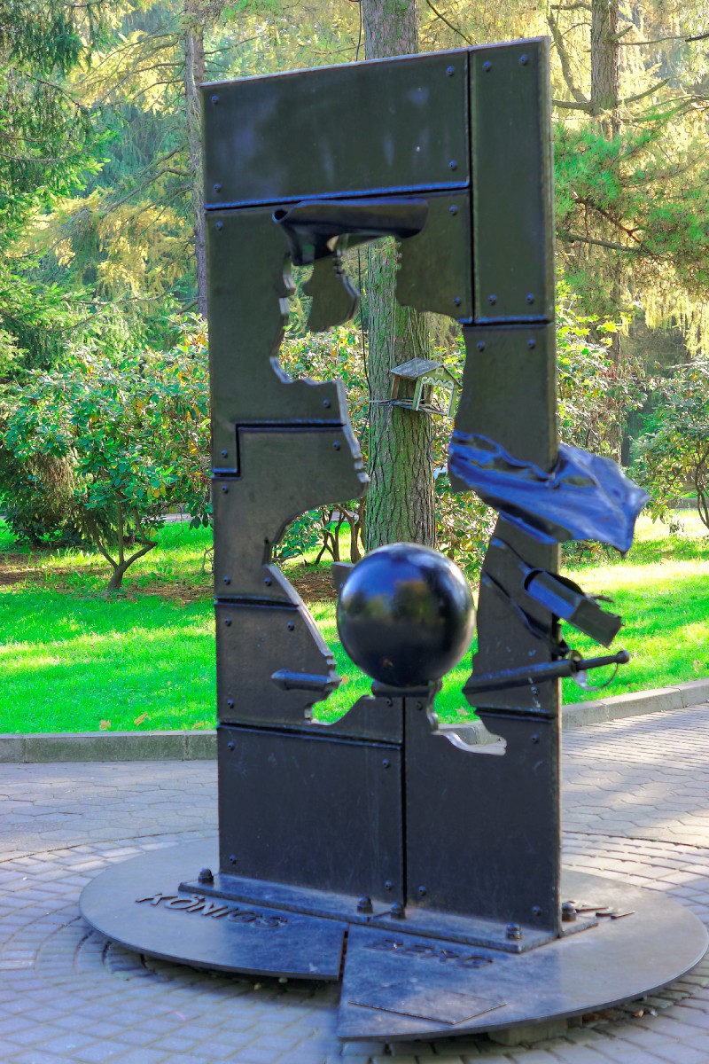 Выдумщика барона я нашла в ЦПКиО. Мюнхгаузена не застала, он улетел, оставив лишь свой силуэт в проеме металлической конструкции. Здесь можно сделать веселую фотографию на ядре, заменив собой знаменитого фантазера.
