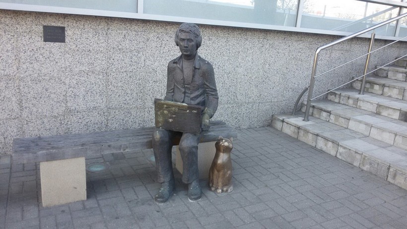 Четвертый кот мне понравился больше всех, хотя некоторые считают, что в этой скульптурной композиции он на второстепенных ролях. Юноша с ноутбуком и напыщенным котом у ног, сидит прямо напротив дома советов.