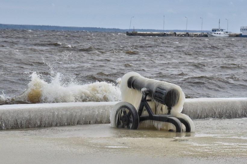 Напоследок рекомендую посетить набережную Онеги. Пройдите вдоль безымянных памятников и инсталляций (сколь не ищите, не найдёте ни единой таблички), сфотографируйте штормящее озеро-море. Киньте волне монетку.