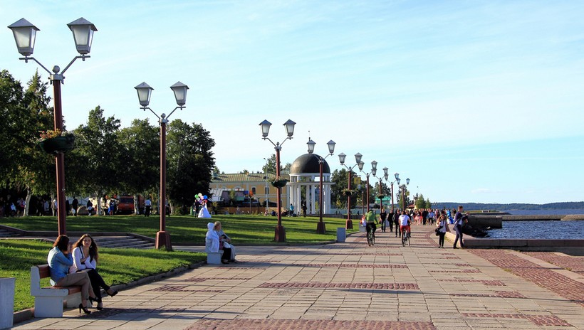 - Больше всего впечатление производит прогулка по набережной. Поскольку город стоит на берегу Онежского озера.