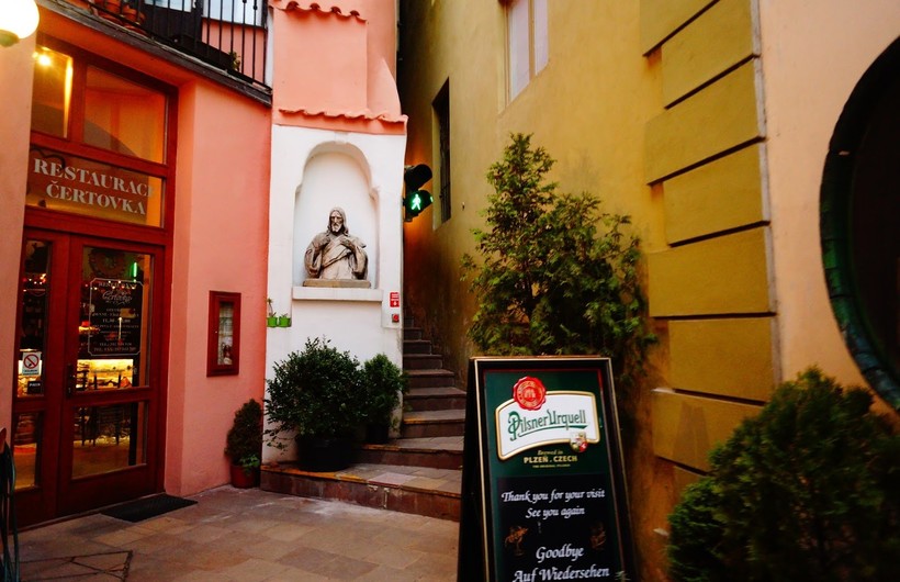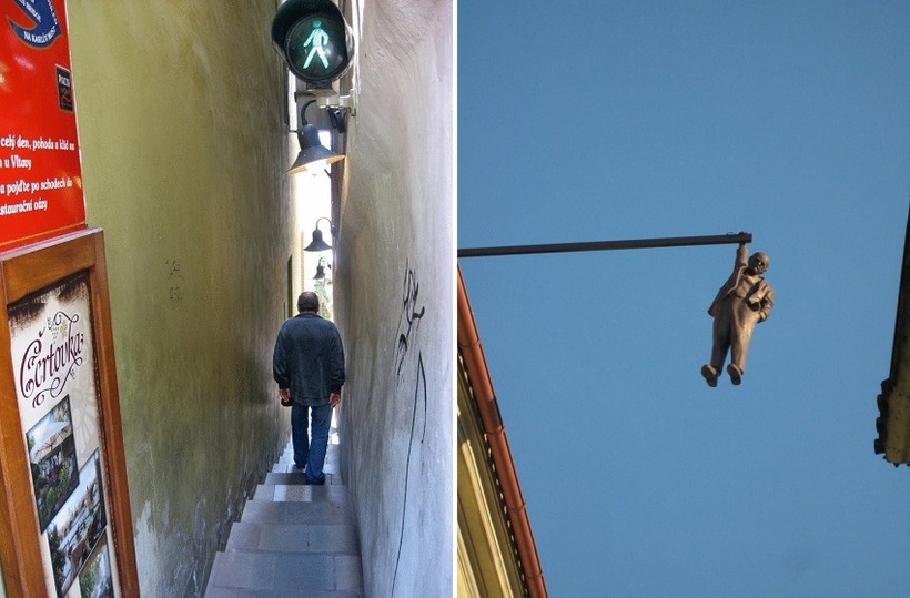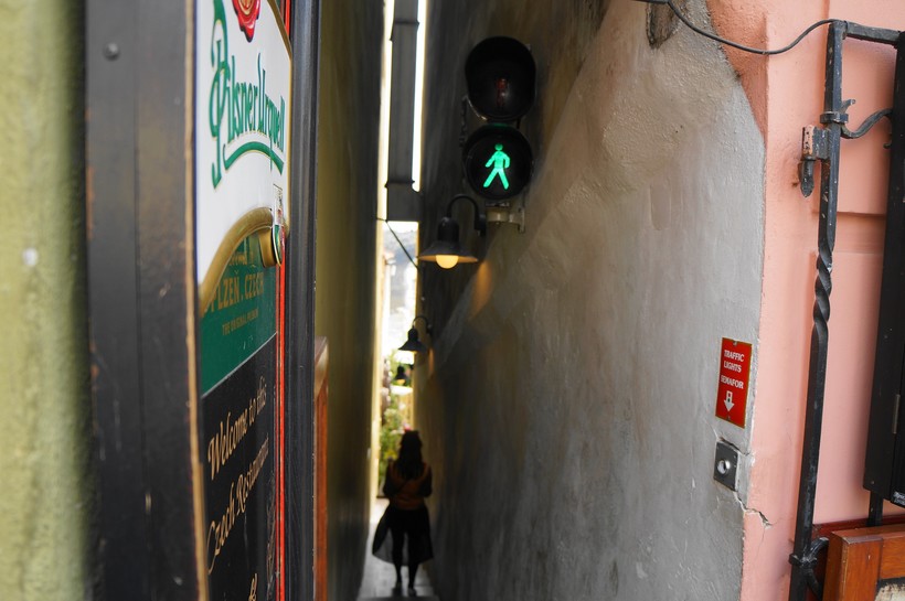 Например, вы когда-нибудь видели пешеходную улицу, на которой движение регулируется светофором? Улица с задорным названием Винарна Чертовка настолько узкая (всего 70 см в ширину), что движение по ней пришлось сделать регулируемым.