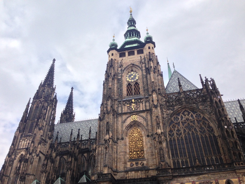 Перейдя через Карлов мост, я попала в Пражский град, где увидела жемчужину всей Праги — Собор Святого Вита. Этот католический собор настолько большой, что сфотографировать его полностью почти невозможно. Работа над его строительством продолжалась в течение нескольких веков, и внутри он также красив, как и снаружи. Витражные окна, высокие колонны, бюсты чешских правителей и архиепископов, невероятных размеров орган — все это поразило меня своим величием!