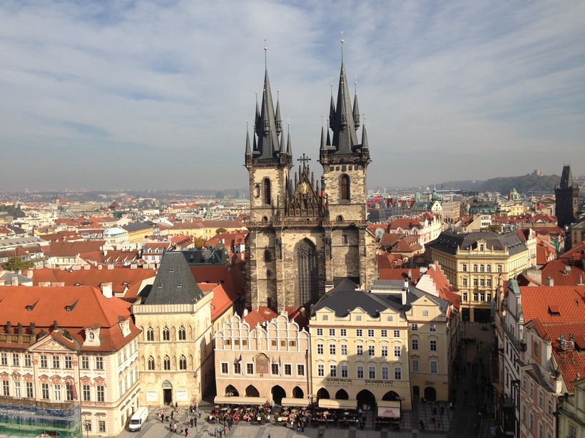 Старинная площадь в Старом городе, окруженная зданиями всевозможных архитектурных стилей от готики до барокко. На площади есть несколько уютных кафе, лавки с уличной едой, сувенирные ларьки, частенько на ней играют уличные музыканты. Одна из главных достопримечательностей площади — ратуша с астрономическими часами. Эти старинные часы впечатляют не только своей красотой, то также и своей историей. Каждый час под бой курантов можно наблюдать за движущимися на часах фигурками. После представления я поднялась на обзорную площадку в ратуше и насладилась видом на Храм Девы Марии перед Тыном и на сам город.