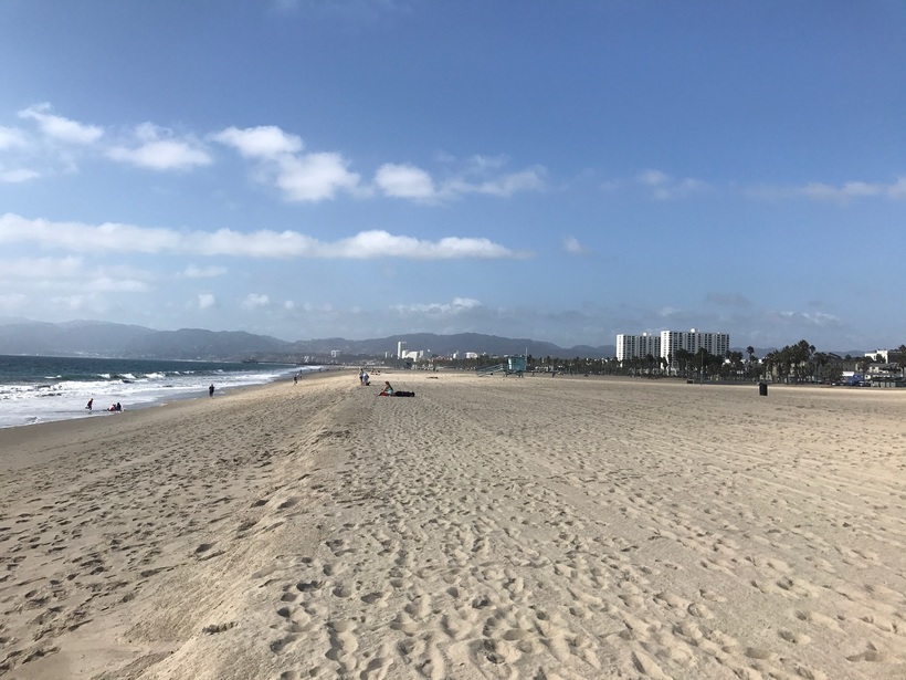 В октябре в Санта-Монике уже достаточно тепло, чтобы позагорать.