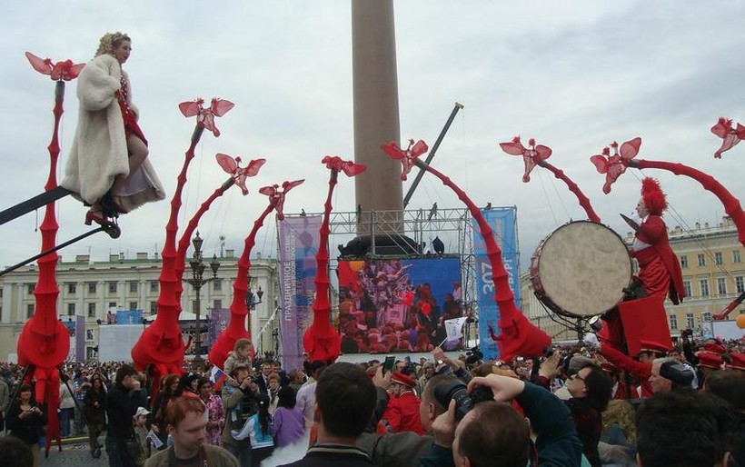 - день Питера – 27 мая, карнавал, концерты, фейерверки, уличные музыканты и танцоры – было весело;