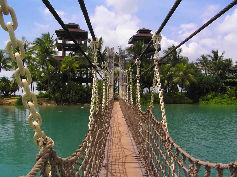 Конечно, рассказывая о Сингапуре, необходимо упомянуть и о пляжах острова с белоснежным песочком и бирюзовым морем. Они все хороши, но мне приглянулся Палаван: наверное, все дело в подвесном мостике, ведущем на небольшой островок.