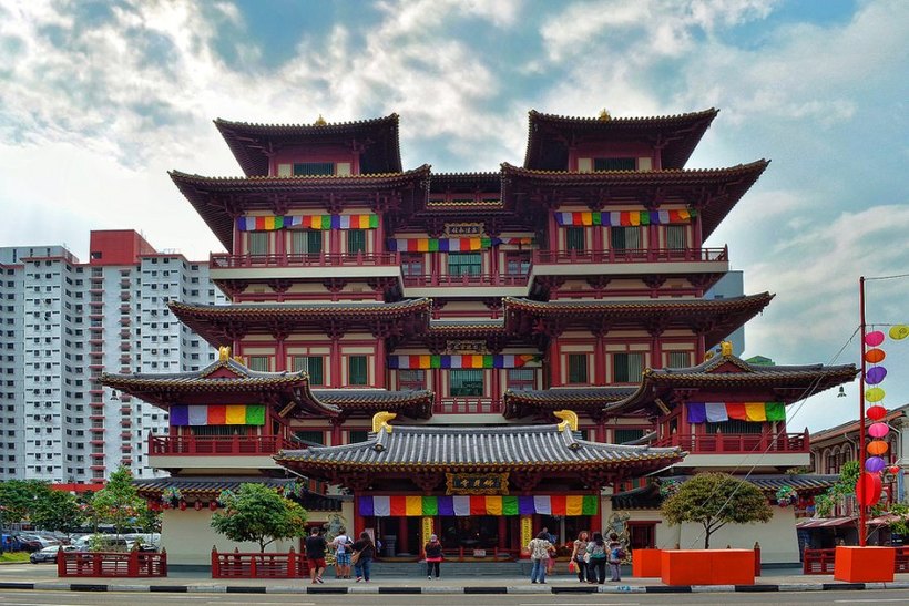 Здание Шри Мариамман скорее похоже на огромный яркий торт, нежели на храм, но это и делает его визитной карточной города. Здесь можно увидеть сразу две достопримечательности - непосредственно сам храм и чайна-таун (огромный рынок), расположенный прямо возле святыни.