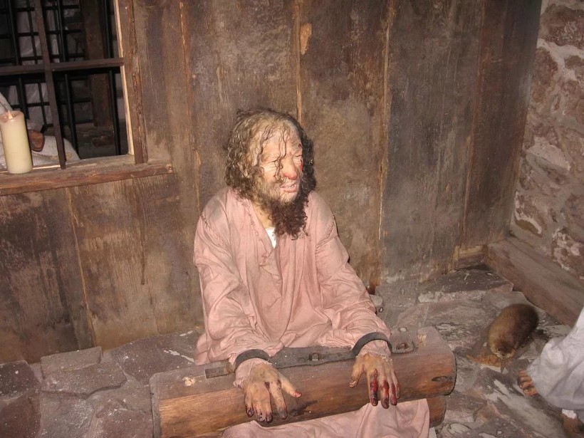 На входе меня встречал палач. Интересное начало. Везде звучит музыкальное сопровождение, чтобы ещё больше запугать туристов. Здесь стоят различные экспонаты, которые изображают изощрённые пытки. Они очень реалистичные. Настроение сразу уходит в минус. На это нельзя спокойно смотреть. Я не знаю, как люди смогли пережить это.
