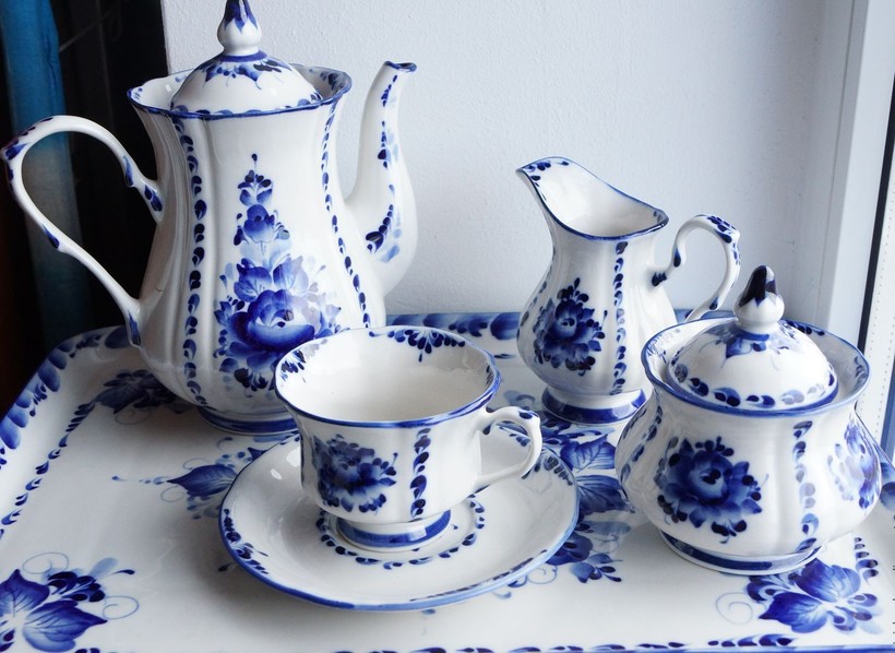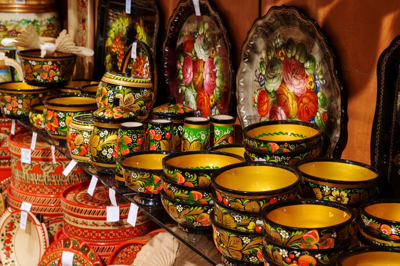 - вещи и посуда с русскими узорами (хохлома, гжель);