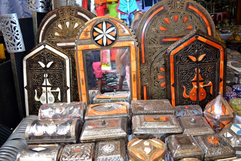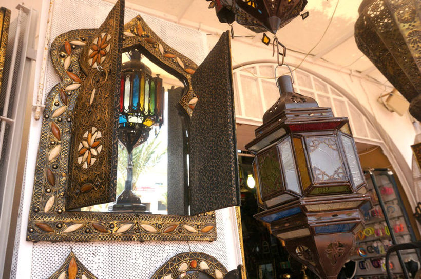 Но я хочу упомянуть про типичные покупки именно для Туниса. Интересным и помпезным будет выглядеть зеркало в форме восточных дверей. Мало, правда, кому может это подойти в интерьер, но смотрятся они действительно роскошно. Можно найти маленький вариант зеркальца, которое поместится в дамскую сумочку. А еще одна интересная вещь, которую можно здесь купить — это глиняный африканский барабан, обтянутый сверху кожей.
