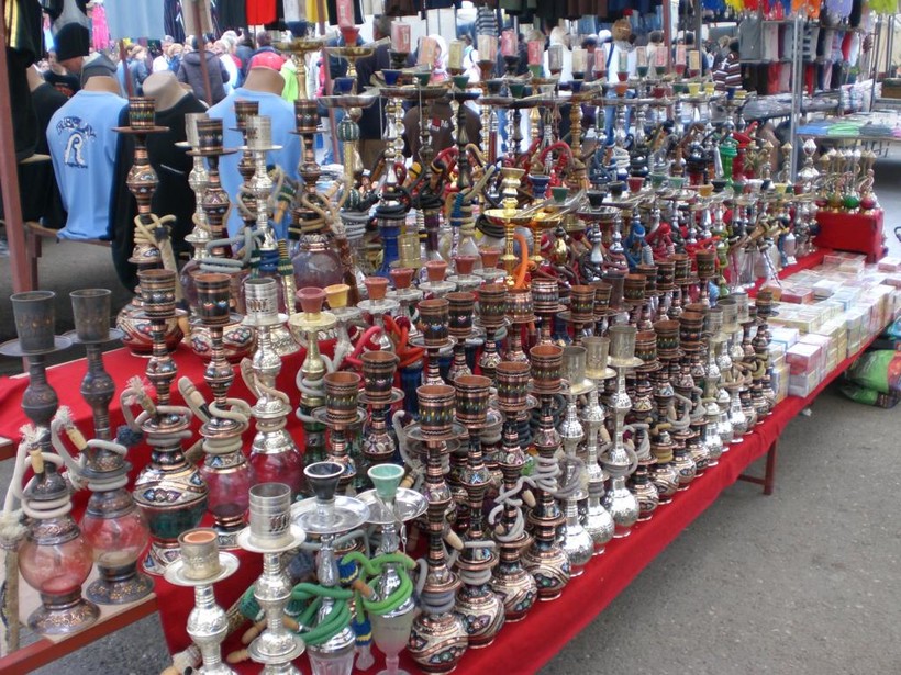 - Кальян. Тут найдете аппарат любой формы и размера, с чашей из глины или металла, с резиновой или плетеной трубкой — ассортимент неисчерпаем.