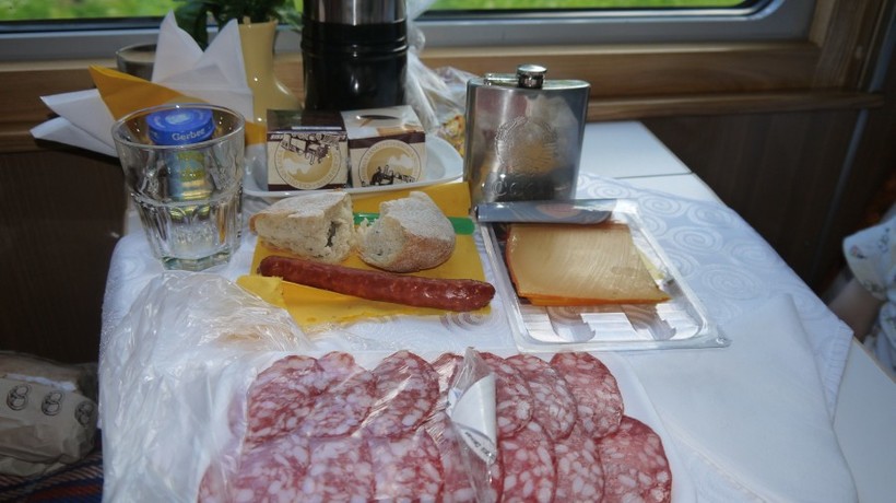 В среднем дорога в поезде занимает 6-8 часов. С учетом того, что начинаю свою поездку я не голодная, то в дороге кушаю только один раз. Что я кушаю чаще всего: