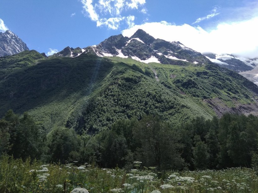 Остроконечные горы и ледники, живописные гроты и озера, изумрудные леса и луга, усыпанные пестрыми цветами — таким я увидела Домбай в июле. Достопримечательности здесь повсюду, все они связаны с природой. Нельзя пропустить Алибекский водопад, склоны горы Мусса-Ачитара и долину Бу-Ульген.