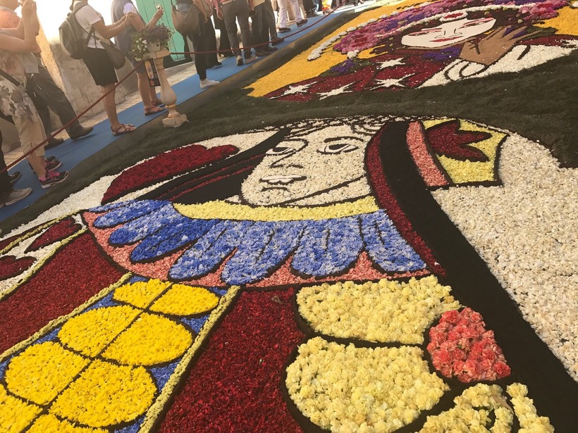 Только представьте, вся улица покрыта красочными цветами, которые образуют огромные узоры. Команды молодых художников, хотя, скорее, это флористы, а может, два в одном, используют миллионы лепестков для создания великолепных полотен.