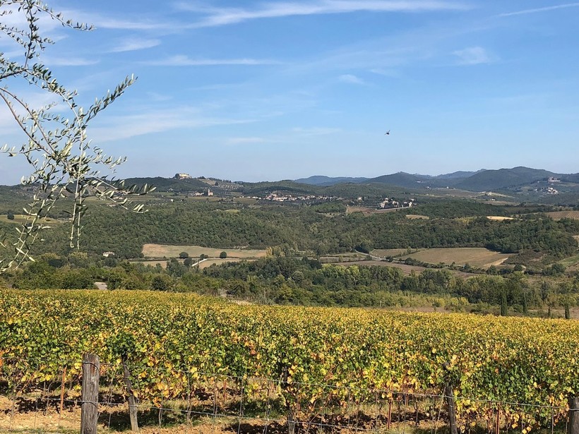 Осень — удивительная пора! Люблю это, не слишком популярное у туристов, время года. Октябрь в Тоскане — пора сбора урожая оливок и охоты на трюфели. Воздух пропитан ароматом жареных каштанов. Приехав на виноградники в Кастельнуово-Берарденга, была восхищена яркими осенними красками: зеленый, желтый, багряный, охряной цвета плавно перетекали один в другой.