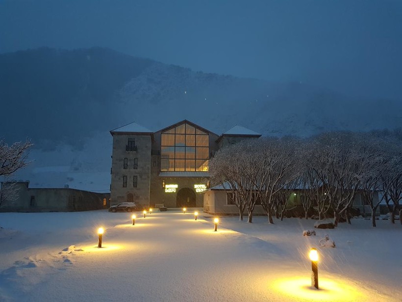 Остановились в Степанцминде в частном секторе. Это километров тридцать от курорта. Районный центр, c необходимой инфраструктурой. Питались в кафе и готовили сами. Продукты покупали в поселке. Минус сезона - высокие цены на жилье. Но при этом, бронировать надо еще летом. Мы озаботились только в ноябре и с трудом нашли вариант. Оформили страховку через сайт-агрегатор. Я нашла в сети промокоды, с помощью которых получила до 30% скидки. Плюс страховые компании через интернет продают страховки изначально дешевле и с выбором ассистанта, что важно.
