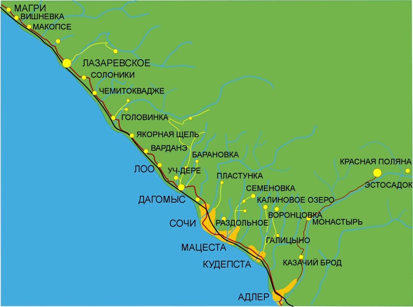Лазаревское — это где? Черное море ассоциируется у меня с Сочи да Адлером. Такой городок, как Лазаревское обычно остается за кадром. Проехали мимо на поезде и забыли. Так было и у меня до тех пор, пока не пришла пора самостоятельного отдыха. Санатории Сочи предлагали заоблачные цены на путевки, и я поехала отдыхать «дикарем». Как ни странно, ни море, ни пляж, ни погода не отличались от сочинских. Еще бы, ведь расстояние всего 70 км, и жариться на солнце можно точно также.