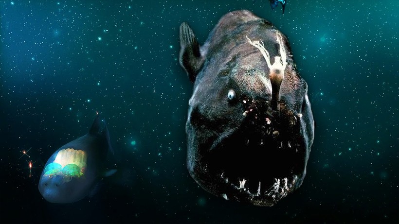 - рыбы-рыболовы, со светящимся "светодиодом" над лбом,