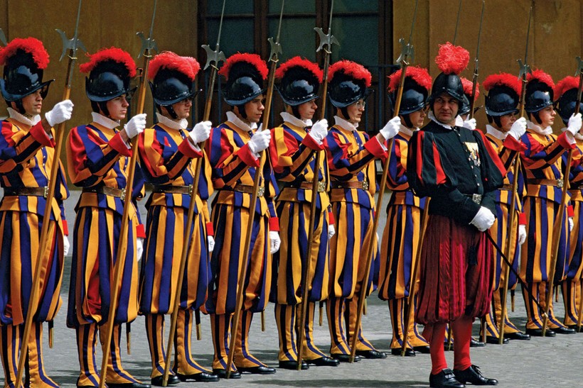 Если вы желаете увидеть Ватикан своими глазами, вам стоит отправиться в Рим. Именно здесь находится такое маленькое, но такое известное место. Знаете, сколько людей проживает на его территории? Приблизительно 770 человек. Но все эти жители в Ватикане не живут, а только работают. И чаще всего они служат в швейцарской армии, которая охраняет днями и ночами это государство. Но стать членом этой армии может не каждый. Только холостой мужчина, который имеет католическую веру и имеет гражданство Швейцарии.