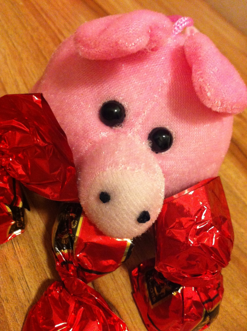 Кстати, в новогоднюю ночь в доме австрийцев должен быть поросенок (Schweinchen)., но не настоящий, конечно:) Это может быть как конфетка в виде поросенка или обычный сувенир или мягкая игрушка ( ак была у нас). Их продают повсюду - в кондитерских, в ларьках. Его можно съесть или просто поставить на стол. Как считается, они приносят удачу.