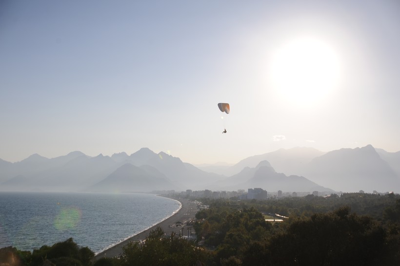 Не буду терзать вас местными названиями, но всё Анатолийское (Анталийское) побережье Турции представляет собой сплошную горную гряду с вершинами от 500 до 1500 метров. Один из самых популярных туристических аттракционов - спуск на параплане с вершины ближайшей горы прямо на пляж.