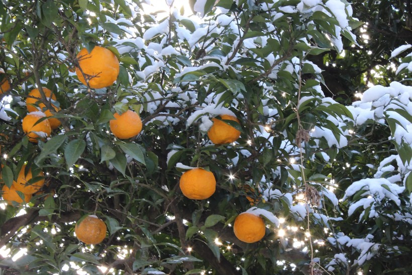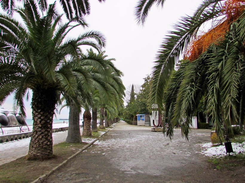 Снежная погода — большая редкость в данных краях. Я застала осадки лишь раз. Было непривычно рассматривать зелёные пальмы, покрытые снегом. Необычное зрелище!