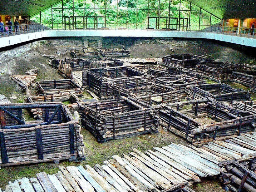 Очень любопытно было увидеть воочию: миниатюрные домишки; мощеные бревнами улочки поселения; муляжи домашних животных, одежду и обувь людей. Очень удивило, что размеры их были раза в два меньше наших теперешних. И все это сохранилось на глубине 3-5 метров ниже уровня поверхности земли.