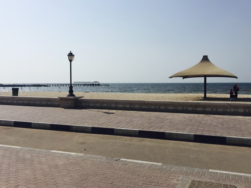 Ночью температура падала до +27 градусов, но свежее или прохладней от этого не становилось. Так же душно и липко. Невозможно охладиться и в море, вода прогревается до +30 градусов. Единственное спасение – холодный душ. Понравился пляж Ajman Beach – немноголюдно, чисто, вода прозрачная, рано утром прямо к берегу приплывают стайки пестрых рыбех.