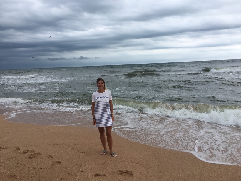 Погодка порадовала теплом с первого денька. Зной и духота в начале лета тут отсутствуют. Температура днем поднималась до +26 градусов. Днями напролет можно принимать солнечные ванны и купаться-плескаться в море. Единственное, водичка по температуре еще прохладная, +23. Да и волны частенько мешали поплавать. С закатом температурка стремительно понижалась. Ночью на Азове всего +16. Темнеет на курорте после 20.00.