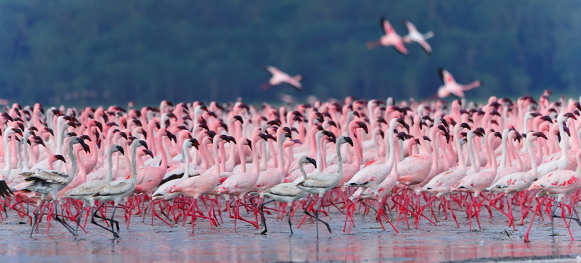 - Накуру, где обитает самое большое количество милейших розовых фламинго в мире.