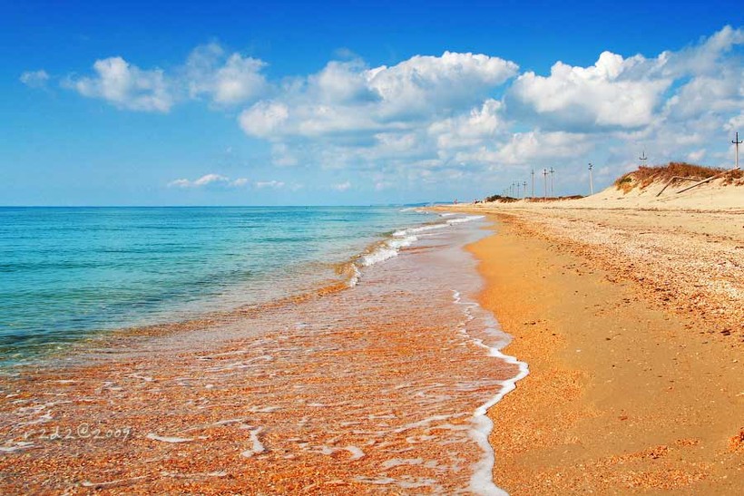 Песчаные пляжи отличаются плавным заходом в море и небольшой глубиной, что особенно удобно, если вы отдыхаете с детьми. Да и вода здесь прогревается сильнее, в июле-августе температура ее достигает 26–27°С. Правда, в середине лета от цветения водорослей повсюду распространяется запах сероводорода. Это, конечно, неприятно, но зато полезно. Простуда вам больше не страшна!