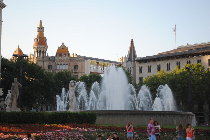 Я не знаю, сколько раз мне нужно приехать в Барселону, чтобы она мне хоть чуточку надоела. Наоборот, в каждый свой приезд я понимаю, что надо еще столько увидеть! Лично меня больше всего (кроме Готического квартала, само собой ) поразила площадь Каталонии. Тут все дело восприятия. Представляете, выходим мы из серого метро после часовой поездки, и тут она. Красавица! Золотистые скульптуры, брызги воды, фонтаны, солнце, радуга, цветы и куча мыльных пузырей! Было ощущение, что я попала в сказку.
